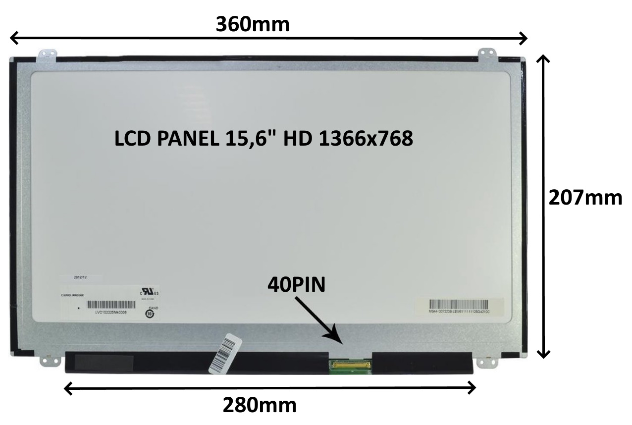 LCD PANEL 15,6" HD 1366x768 40PIN MATNÝ / ÚCHYTY NAHOŘE A DOLE